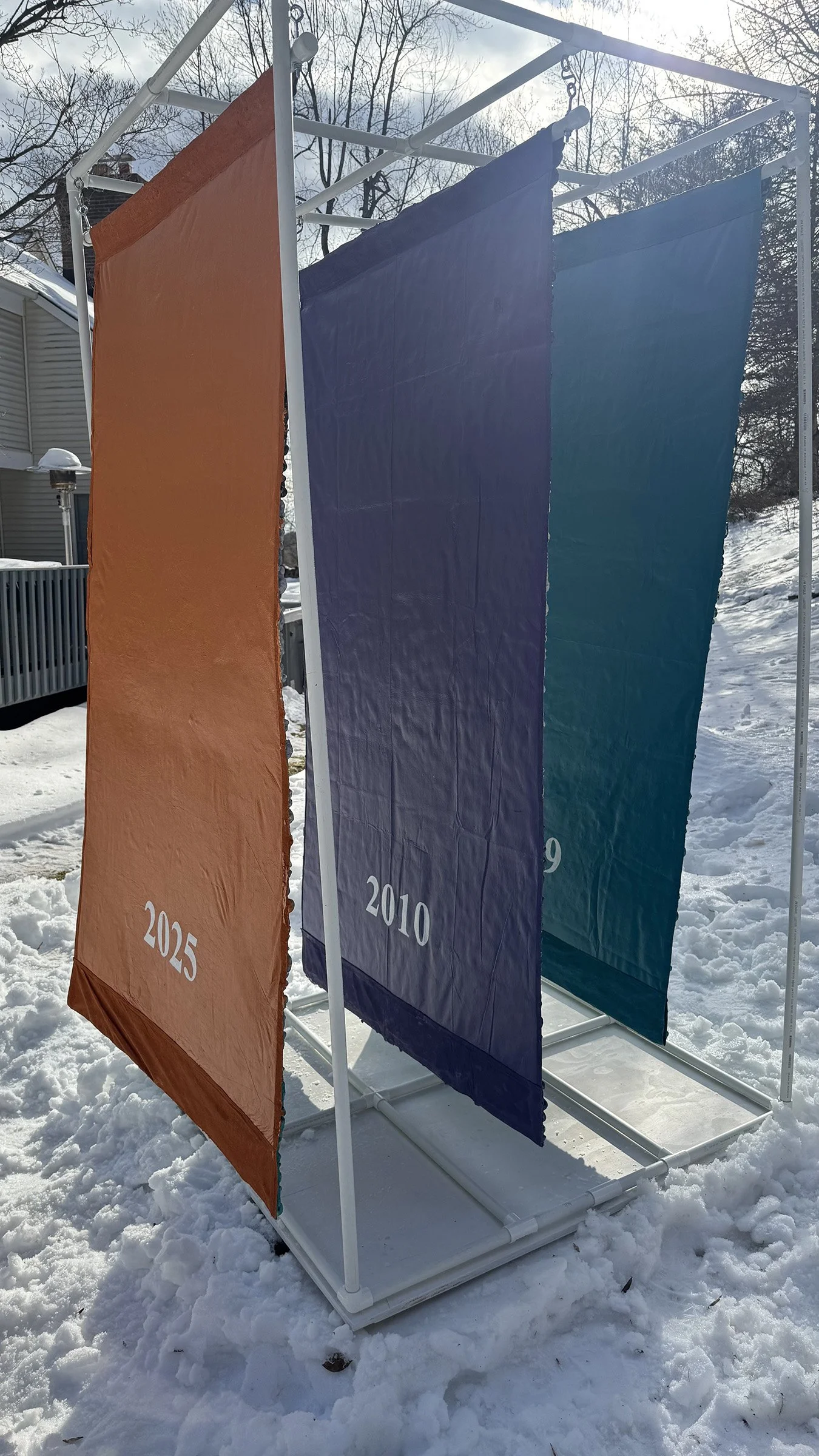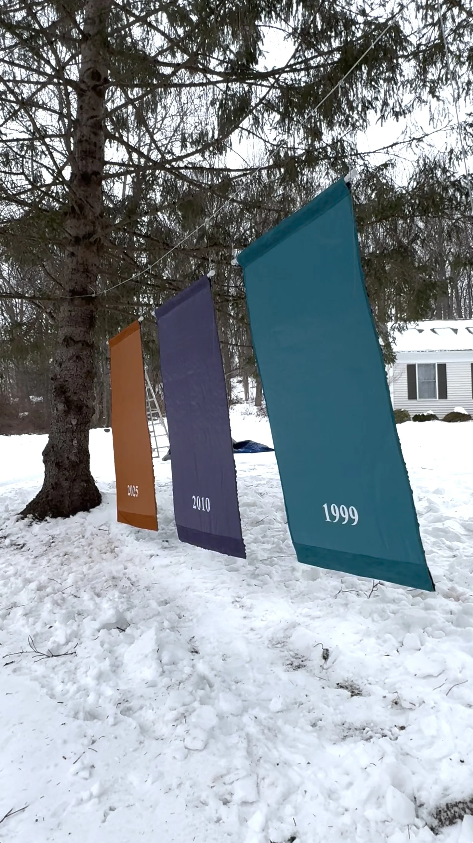 Installation showing all three back surfaces with their respective years.