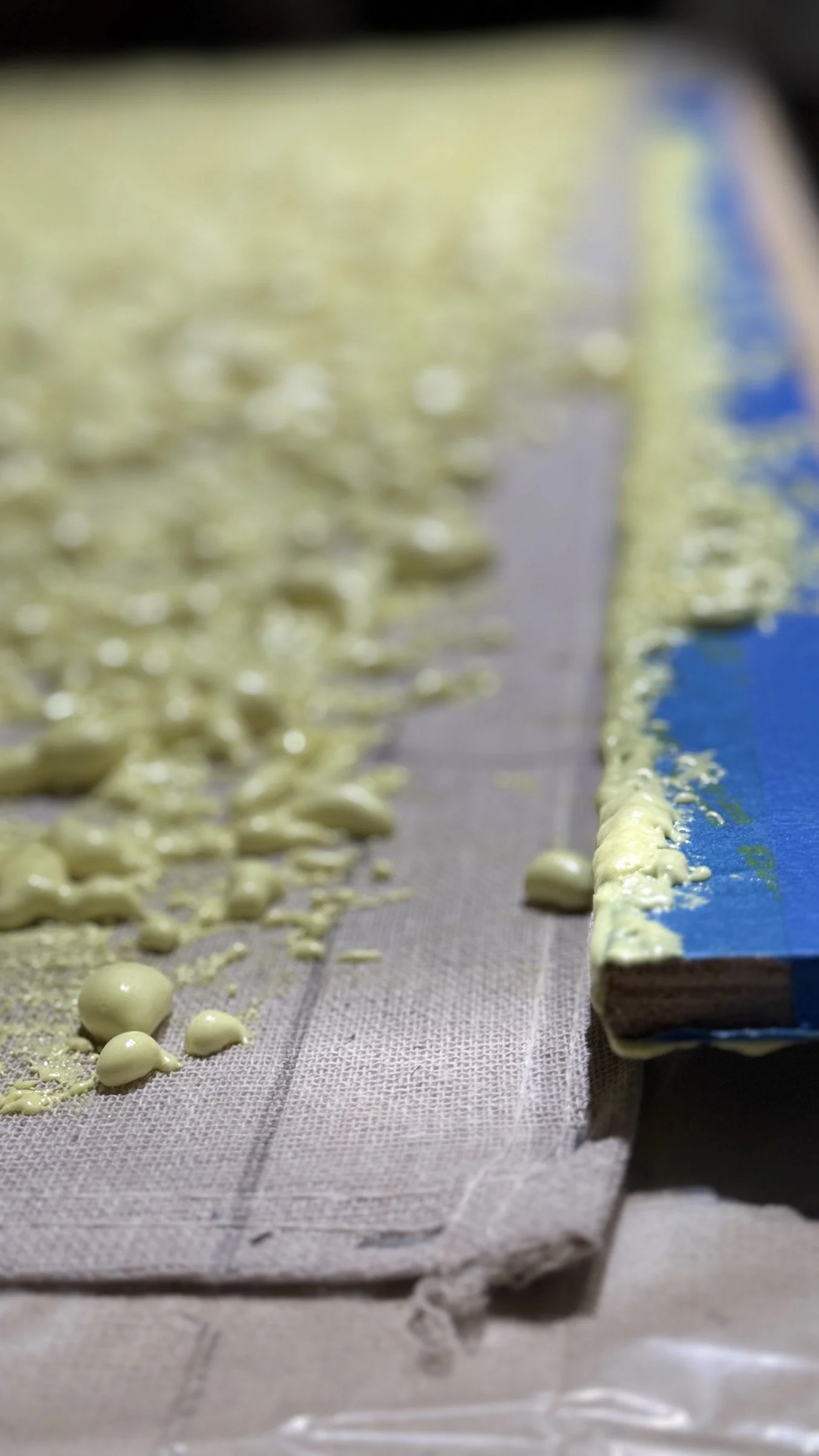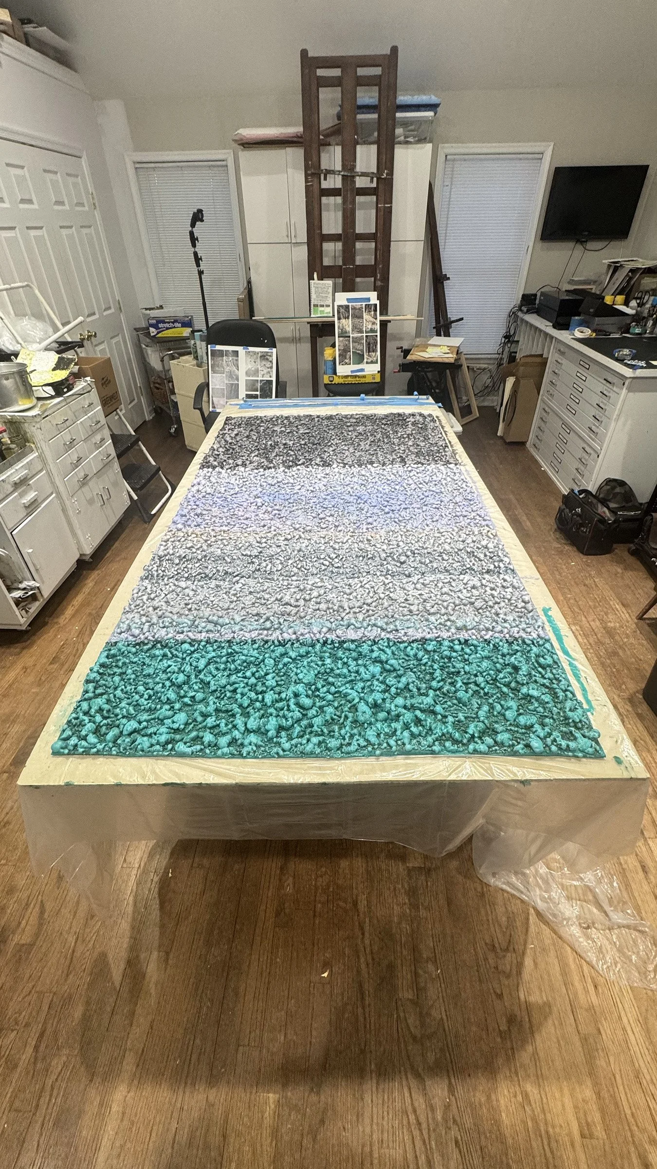 The front of the third bas-relief banner representing the current water level being painted in the studio.