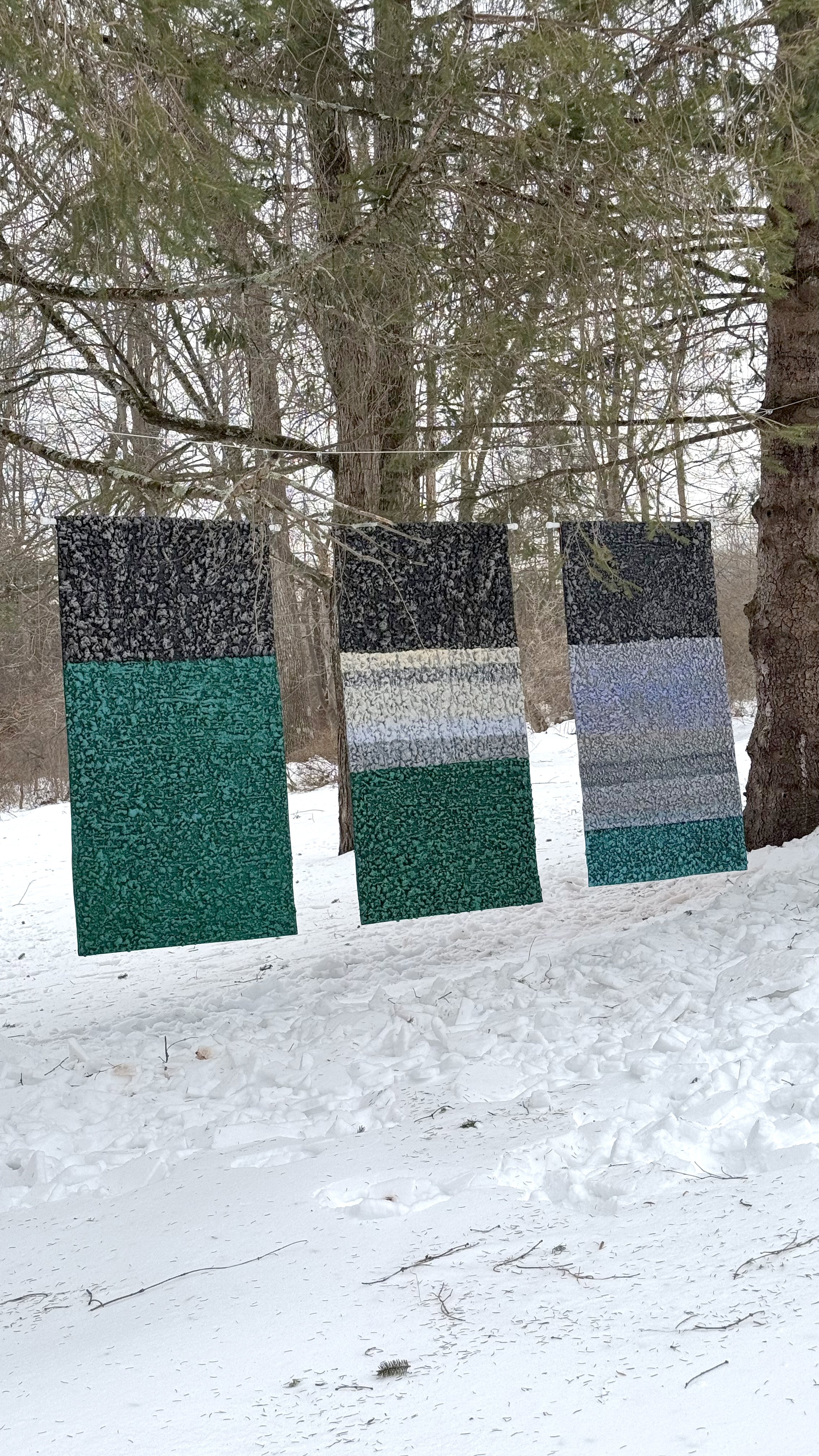 “Waterline” is a three piece sculptural installation with multiple hanging options.